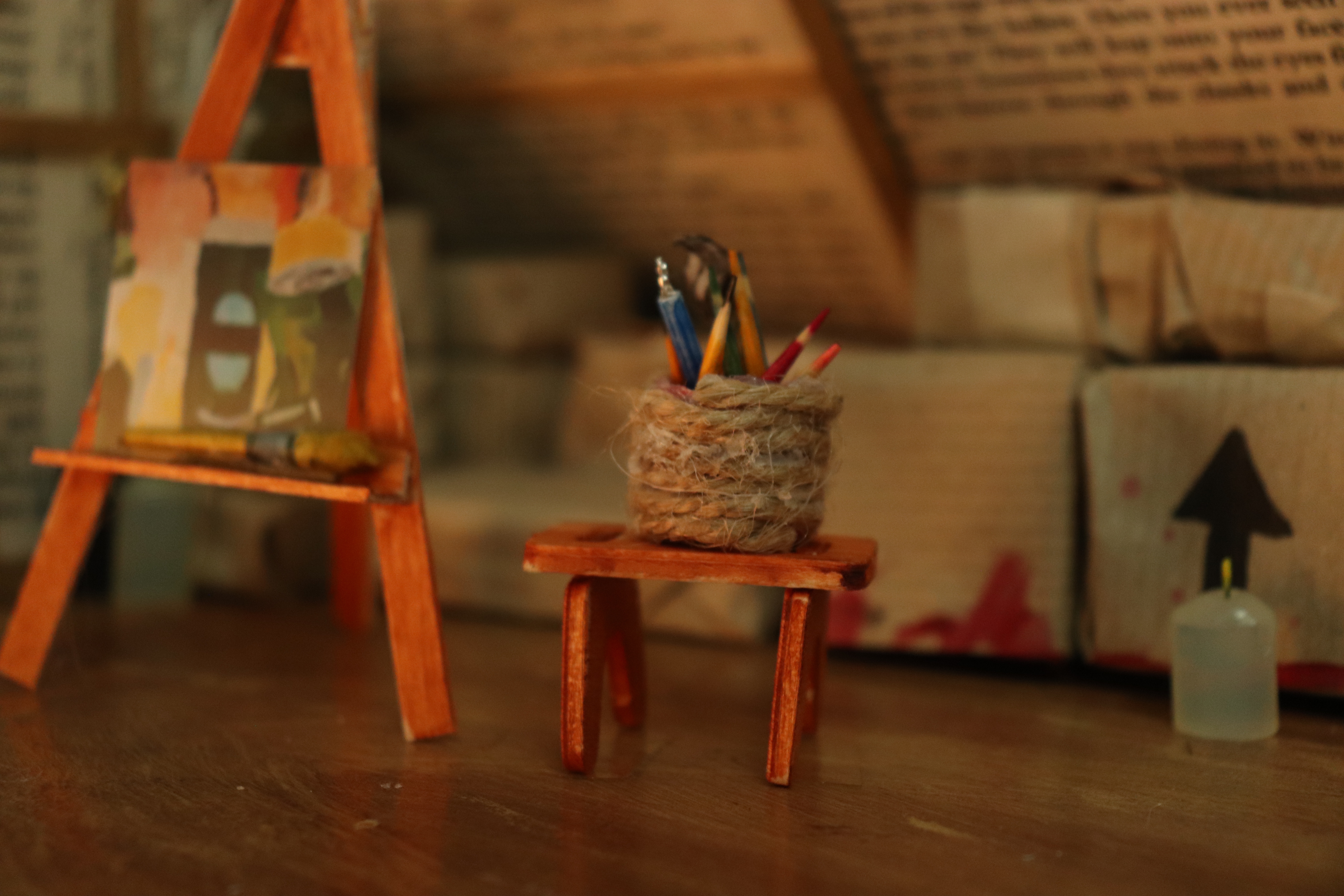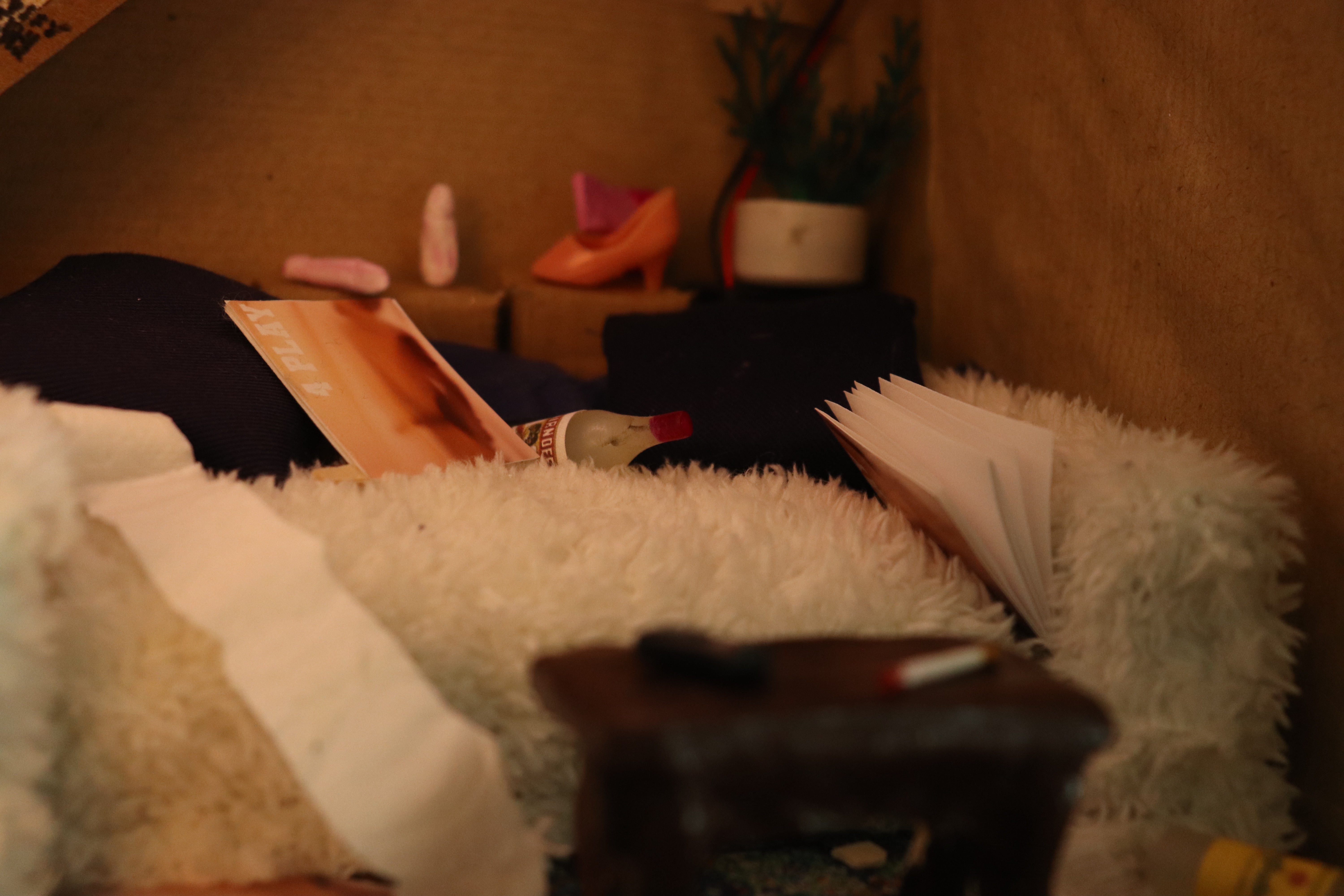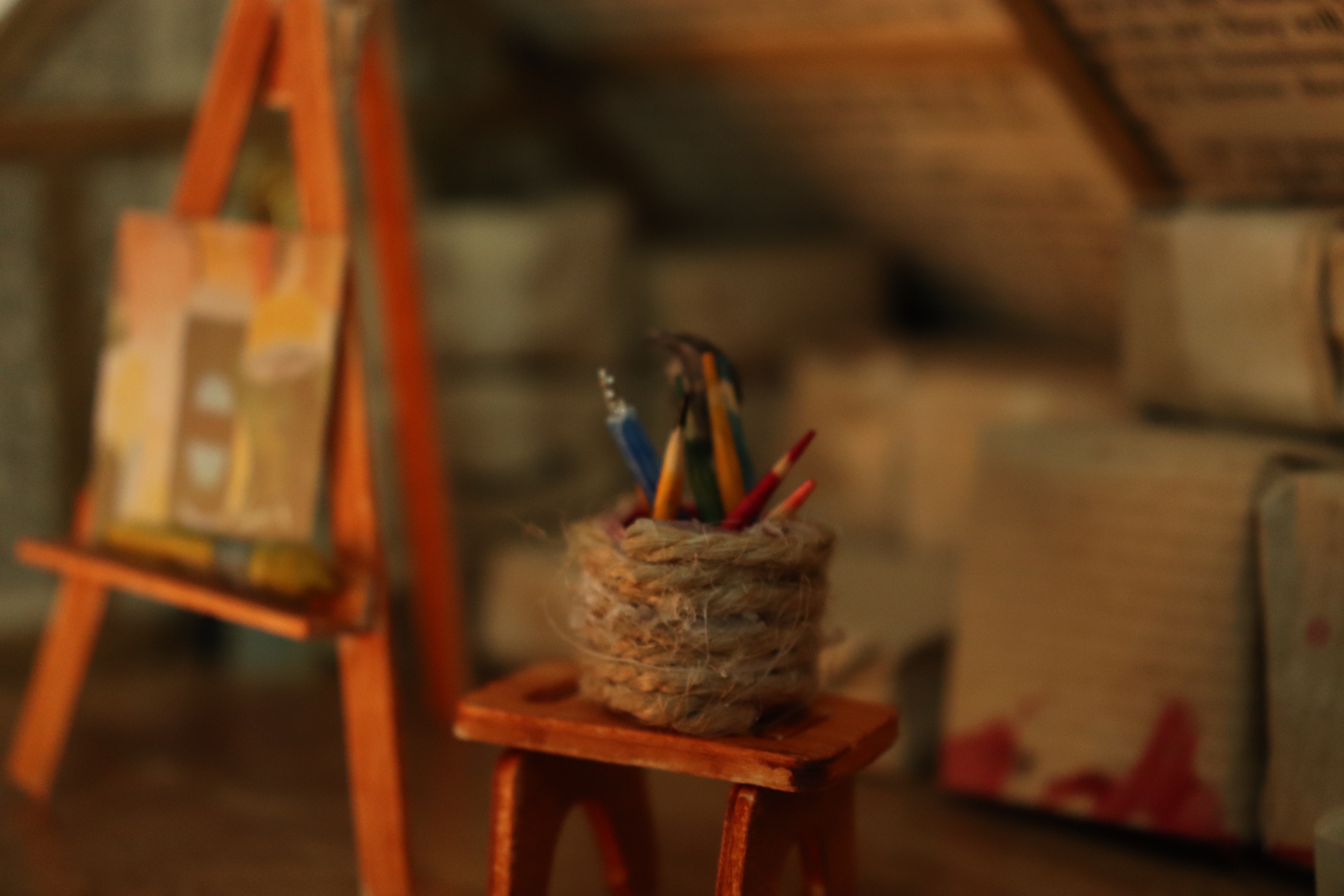 I like to add a mixed media aspect into this, whether it’s by the use of videography/photography, fine art, or graphics. Previous work has included visual artwork that has been enhanced by sound to create an immersive environment. My most recent work involves using small scale and miniatures to construct a smaller scale immersive experience through someone else’s