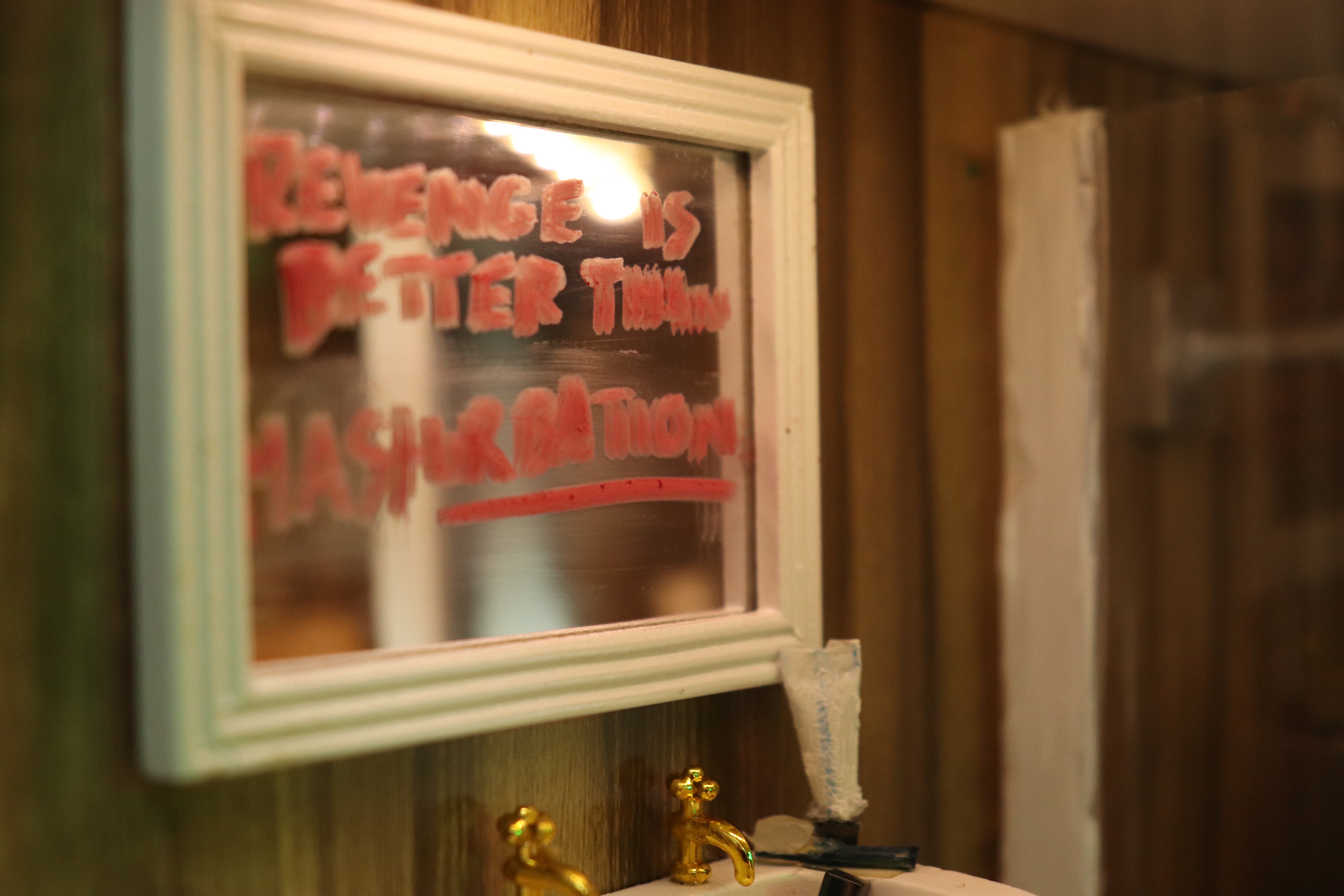 Revenge Is Better Than Masturbation 2021 is a piece inspired by looking through the eyes of someone else. The story is set into different places John lives, works and plots this murder. The house is separated into six rooms; The Attic, Room 306, The Bathroom, The Green Room, The Kitchen and The Living Room.